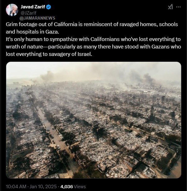 واکنش معنادار ظریف به آتش سوزی در کالیفرنیا